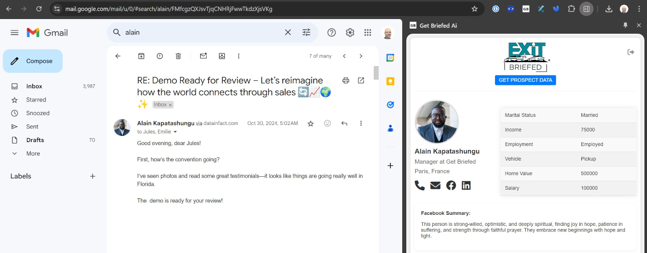 Briefed solves a critical problem : the wasted hours spent on repetitive tasks and disjointed workflows. You lose valuable time searching for basic prospect information — time that should be spent closing deals.